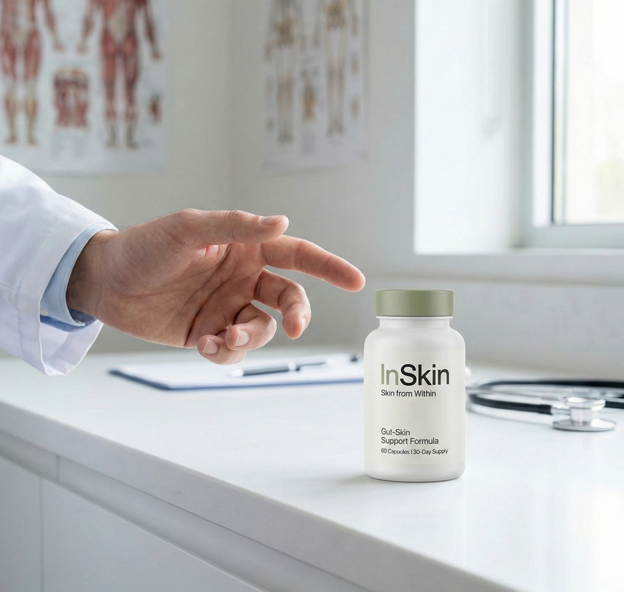 InSkin is formulated based on this research, with clinically-studied probiotics and anti-inflammatory compounds at therapeutic doses.