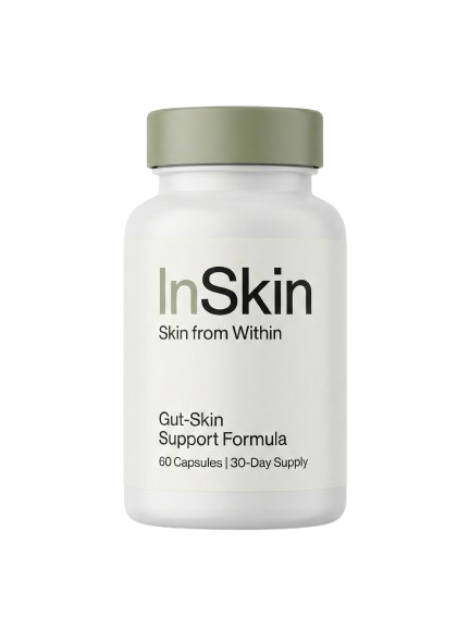 I researched the gut-skin connection for months before trying InSkin. The science made sense. 4 weeks in, my baseline redness is noticeably calmer. Not perfect, but real, measurable improvement.